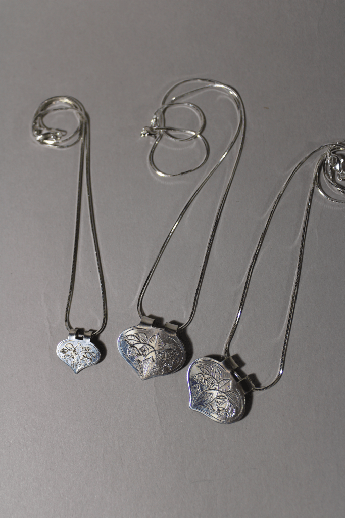 These can now give a flourish to you or your cherished favorite reader of books! These pieces are based on book fittings from the Folger Shakespeare Library(Washington, DC) using the same size and materials. When I was an artist-fellow studying these wonderful little objects, I asked the librarians which ones they would choose if I were to make jewelry out of the designs.