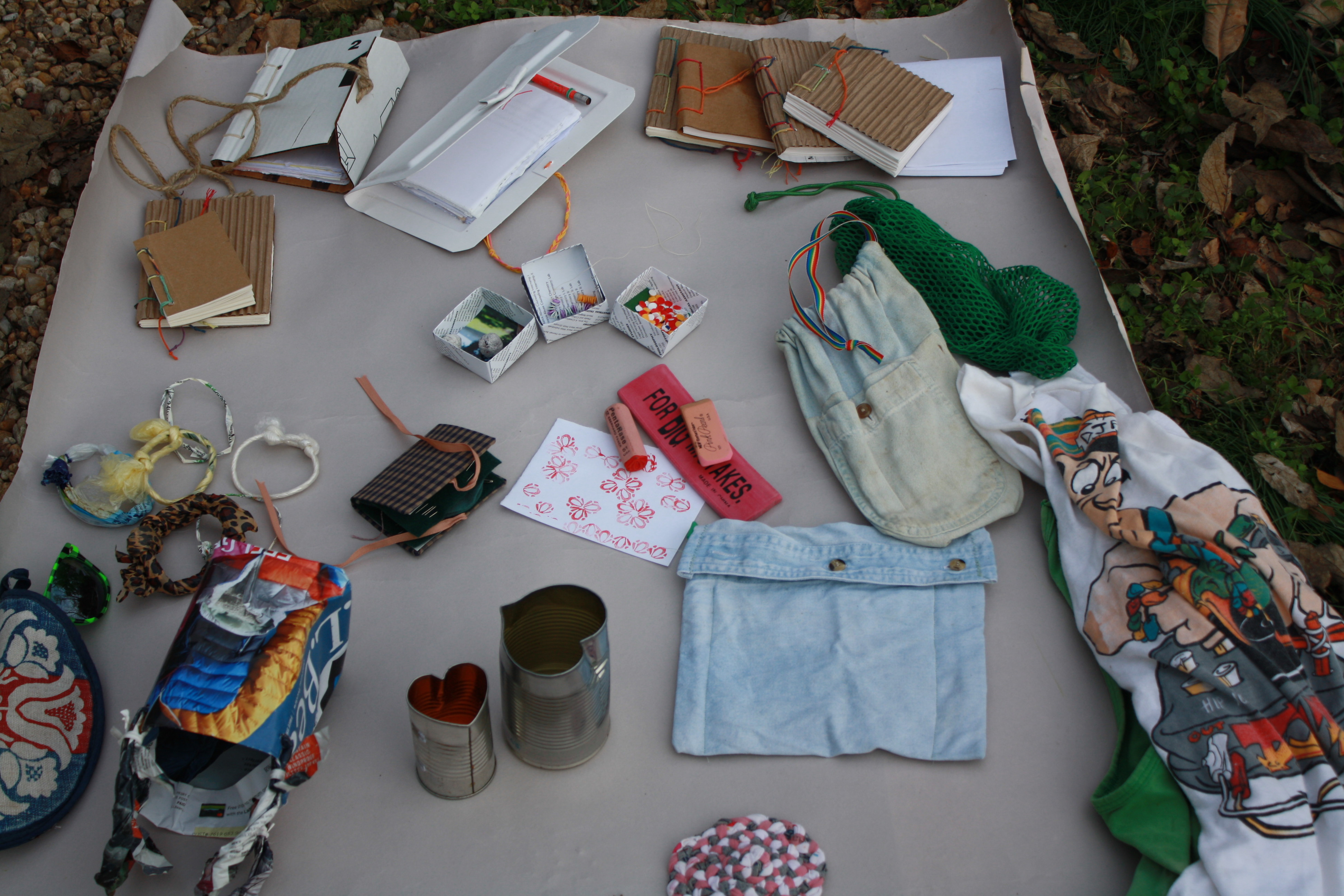 Using materials that you have available to you, a workshop can be designed to use those materials in a way that is useful, creative and fun to make and use. This can be done with any size group from one or two people up to 20 . The complexity of projects and pace will be set by the age of the participants. Items include various types of book bindings, mug mats or placemats, drawstring pouches, gift boxes and bags,, stamps/printmaking tools, jewelry, cases and other useful items.
